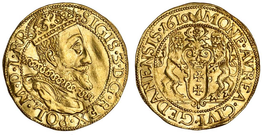 Poland, Sigismund III Vasa (1587-1632), Ducat, 3.50g, 1610, Gdansk (Danzig), sigis. 3. d.g. rex. pol. m.d.l.r.p., crowned bust right, rev. mone. avrea. civi. gedanensis. 1610, city shield with supporters (F.82; HCz.1267), wavy flan, extremely fine