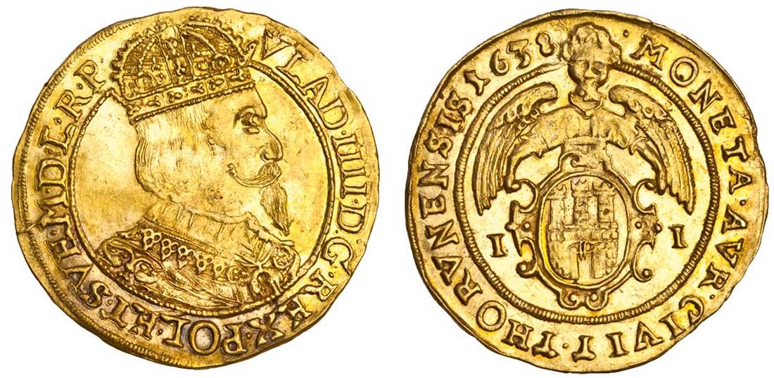 Poland, Wladislaw IV Vasa (1632-48), Ducat, 3.45g, 1638, Thorn, vlad. iiii. d: g. rex. pol. et. sve. m. d: l. r. p., crowned and draped bust right, wearing falling lace collar, rev. moneta. avr. civit. thorvnensis, angel above city shield dividing i-i (F.58; H.Cz.1795 - R4), about extremely fine