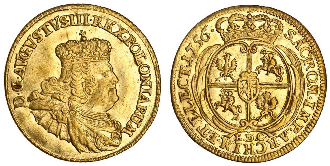 Poland, Friedrich August II (Augustus III) (1733-63), Ducat, 3.45g, 1756, Leipzig, crowned, draped and cuirassed bust left, rev. crowned shield (F.2855 (Saxony); H.CZ.2914 - R1), good very fine