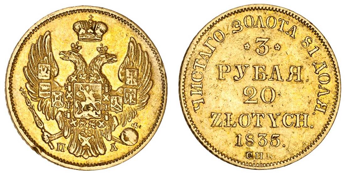Poland, Nicholas I (1825-55), 20-Zlotych, 1835, St Petersburg, Russian eagle, rev. value (F.111; H.Cz.4246), very fine