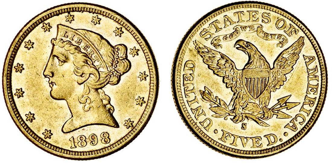 United States of America, gold 5-Dollars, 1898 S (KM 101), extremely fine with some lustre