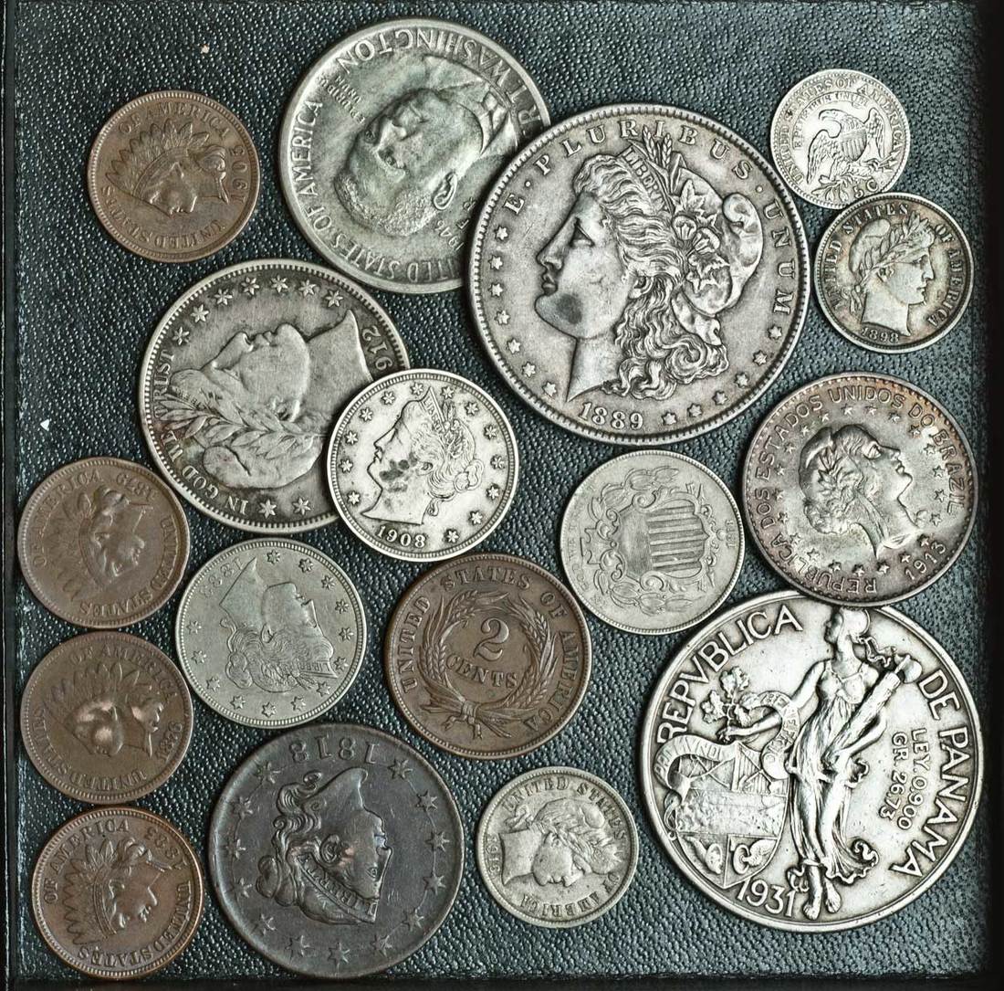 United States of America, miscellaneous coins (15), including Dollar, 1889, Half-Dollar (2), 1912, Brooker T. Washington, 1946, 5-Cents (3), 1868, 1883, 1908, Cents (4), 1876, 1879, 1885, 1905, with Brazil 1000-Reis, 1913, Panama, Balbao, 1931, very mixed, average very fine (17)