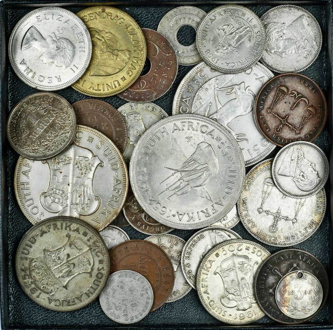 Africa, East Africa, AE Cent, 1924 (KM.22), very fine; East Africa & Uganda Protectorate, 50-Cents (2), 1906, 1911, 5-Cents, 1914, Cent, 1911 (KM.4, 5, 7, 11), about very fine or better; British West Africa, 1/10-Penny, 1928 (KM.7), very fine; Eritrea, Lira, 1891 r, 50-Centesimi, 1890 m (KM.1, 2), very fine and fine; Ethiopia, Gersh (2), 1889 a, AE 1/100-Birr, EE 1889 (KM.9, 12), fine to very fine; Italian Somaliland, ¼-Rupee, 1910 r, AE 2-Bese, 1910 r (KM.2, 4), very fine and fine; Mauritius, AE Cent, 1888 (KM.7), very fine; Mombasa, Rupee, AE Pice (2), 1888 (KM.1.3, 5), very fine; South Africa, 5-Shillings (3), 1951, 1952, 1960, 2½-Shillings, 1954, 2-Shillings, 1958, Shilling (2), 1897, 1958, Sixpence, 1895, Threepence, 1896, 20-Cents, 1961, Brass 1-Cent, 1962 (KM.3, 4, 5, 40.2, 41, 49, 50, 51, 52, 57, 61), the Threepence pierced, very fine or better (28)