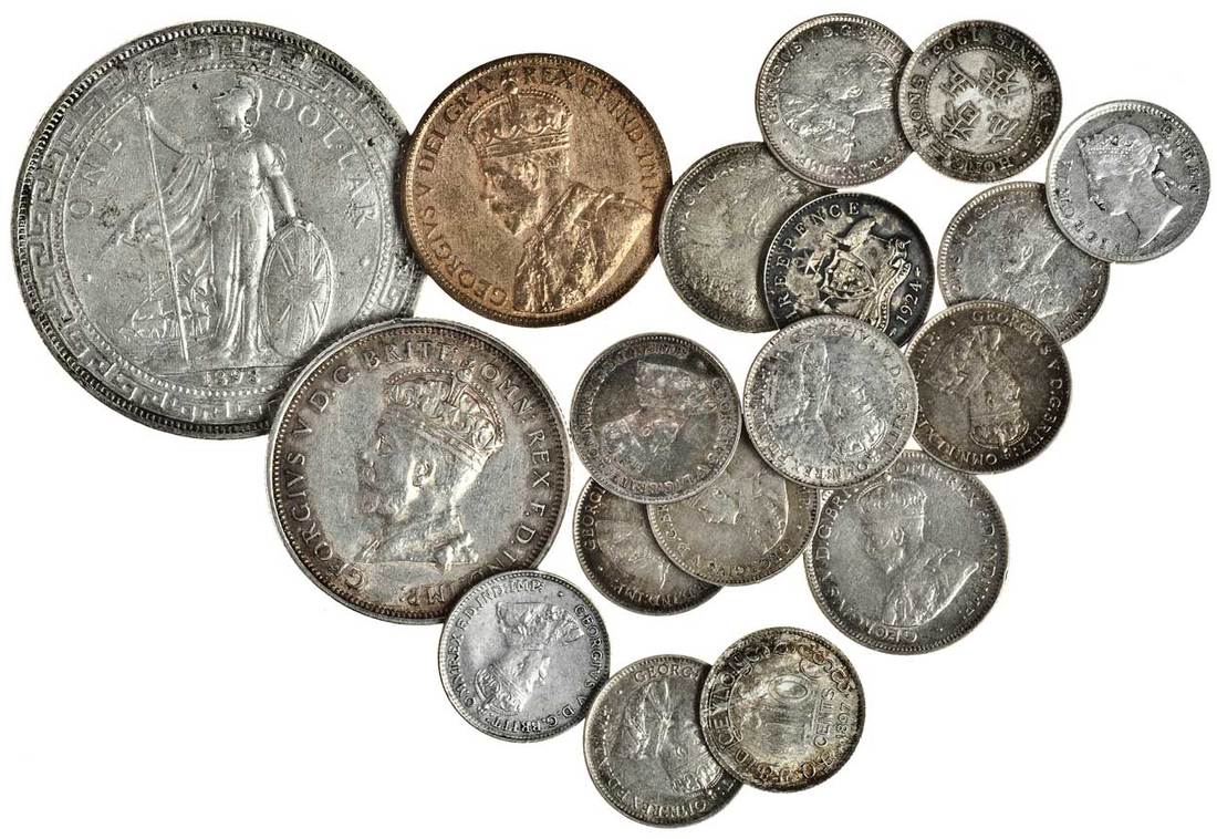 British Commonwealth, Australia, Florin, 1927, Sixpence 1925, Threepences (10), 1911, 1918, 1921 (2), 1922, 1924 (2), 1926 (2), 1927, Ceylon, 10-Cents, 1897, Hong Kong, 10-Cents, 1900, 5-Cents (2), 1893, 1905, Canada, Cent, 1915, British Trade Dollar, 1898 B (Pr.6), last only very fine, others better (18)