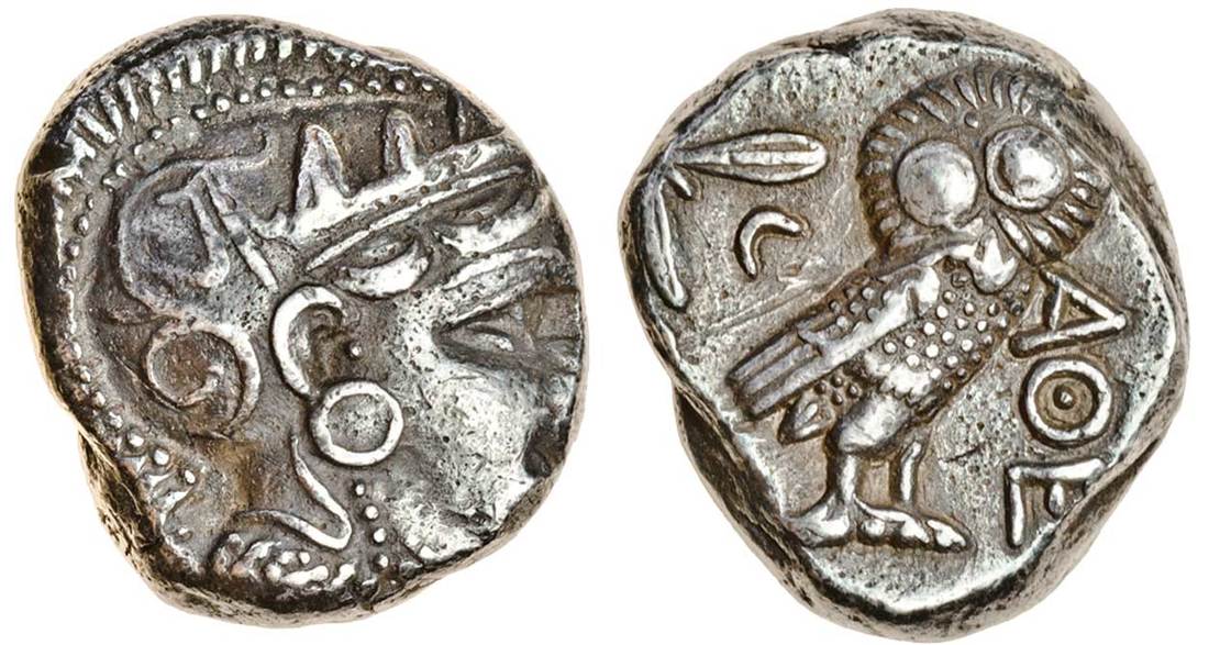 Attica, Athens (4th cent. BC), AR Tetradrachm, 16.99g, helmeted head of Athena right, rev. ae, owl standing right, head facing, olive spray and crescent behind (cf. Svoronos pl. 32), toned, very fine