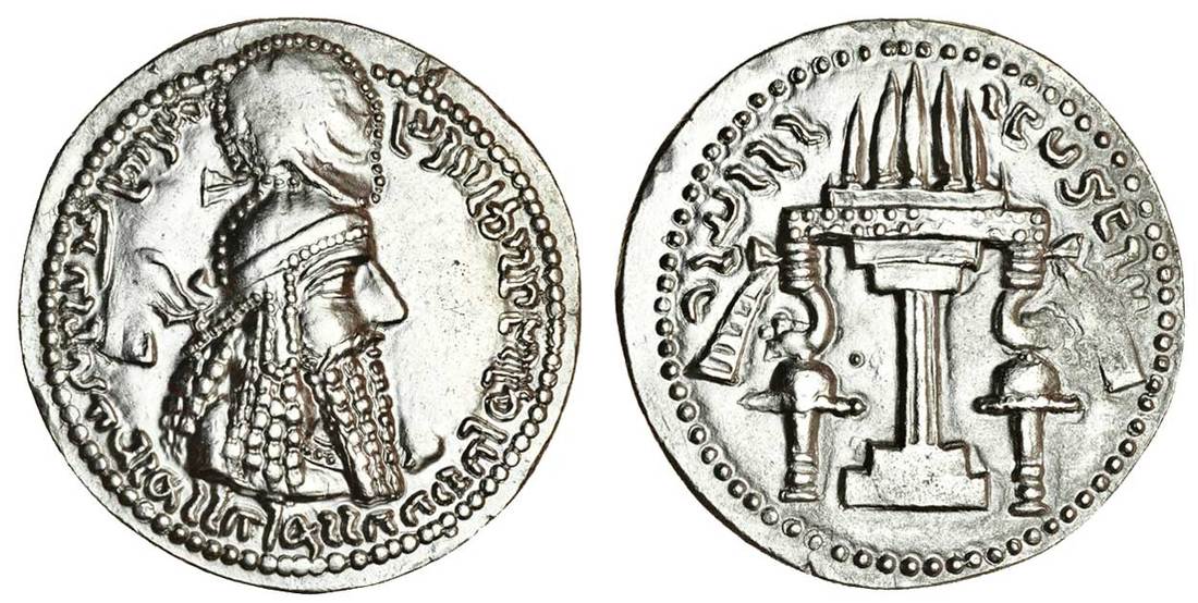 Sasanian Empire, Ardeshir I (AD 223-240), AR Drachm, 4.27g, "Hamadan", bust right, wearing diadem and close-fitting headdress with ear-flaps, surmounted by korymbos, rev. fire-altar with diadems, pellet to left of shaft (SNS pl. 15, A41;G?bl type III 1 / 2), extremely fine