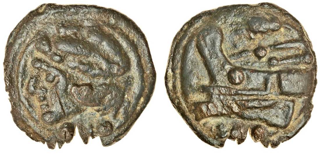 Roman Republic (c.216 BC), AE cast Quadrans, 37.69g, head of Hercules left, wearing lion's skin, three pellets below, rev. prow left, ear of corn above, three pellets below (Vecchi 98; RRC 40/1a; Haeberlin pl. 45,3), split in edge, good very fine