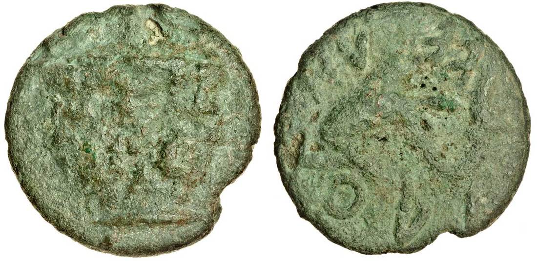 Etruria, Volaterrae (3rd cent. BC), AE cast As, 116.86g, janiform head wearing pointed cap, rev. feaoi, dolphin, I in field (Vecchi 143: Hist. Num. 110b), almost very fine