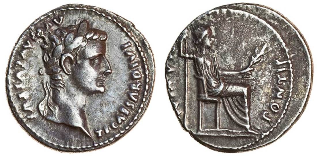 Tiberius (AD 14-37), AR Denarius, (or Tribute Penny), Lugdunum, post AD 16, laureate head right, ti caesae divi avg f avgvstvs, rev. pontif maxim, Livia as Pax seated right, holding sceptre and branch, the chair legs plain and over double line (BMC 34; RIC 26; RSC 16), toned, good very fine
