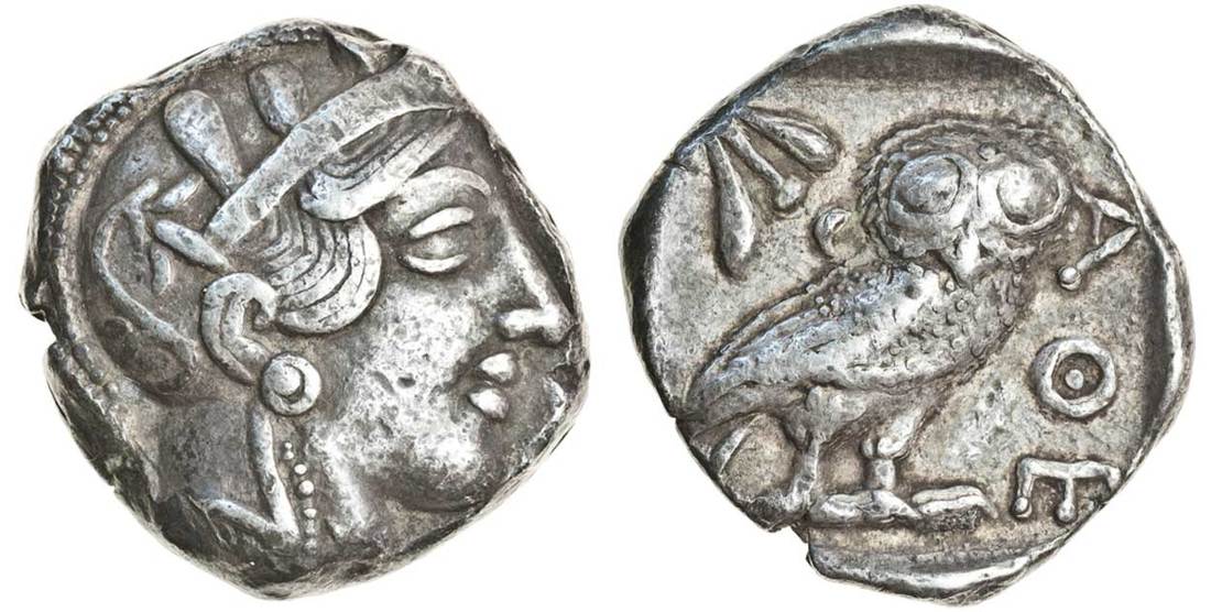 Attica, Athens (c.440-400 BC), AR Tetradrachm, 17.20g, helmeted head of Athena right, rev. ae, owl standing right, head facing, olive-spray and crescent behind, very fine