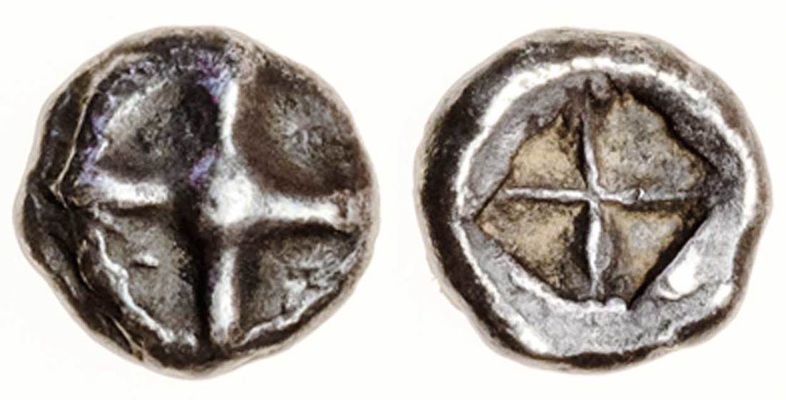 Attica, Athens (c.545-510 BC), AR Obol, .65g, wheel of four spokes, rev. incuse square divided in four diagonally (Dewing 1567), good metal, very fine