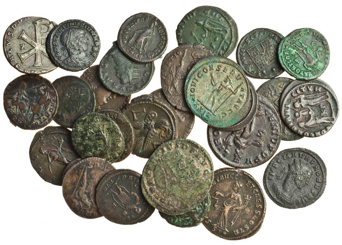 Third and fourth century coins (29), Valerian, Billon Tetradrachm, Alexandria, rev. eagle, year 4, Antoniniani of Gallienus (2), Postumus, Victorinus, Aurelian, Probus (3), a Numerian Billon Tetradrachm, an Antoninianus and a Follis of Diocletian, an Antoninianus and a Follis of Maximian, Folles of Maxentius, Helena, and seven other Constantinian reduced Folles, Centenionales of Constantius II (3) and Magnentius (3), fine to very fine (29)