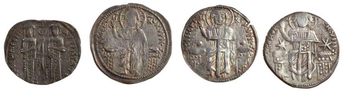 Andronicus II and Michael IX (1295-1320), AR Basilikon, Constantinople, Christ enthroned facing, rev. the emperors standing facing, holding labarum between them (Sear 2402; LPC p.88, 35; Whitting, Num. Circ. 1972), and three others, similar, but pellets above arms of throne on one, and stars on another (cf. Sear 2402 and LPC, 35; Whitting, Num. Circ 1972, p.270 and 324), almost very fine to very fine (4)