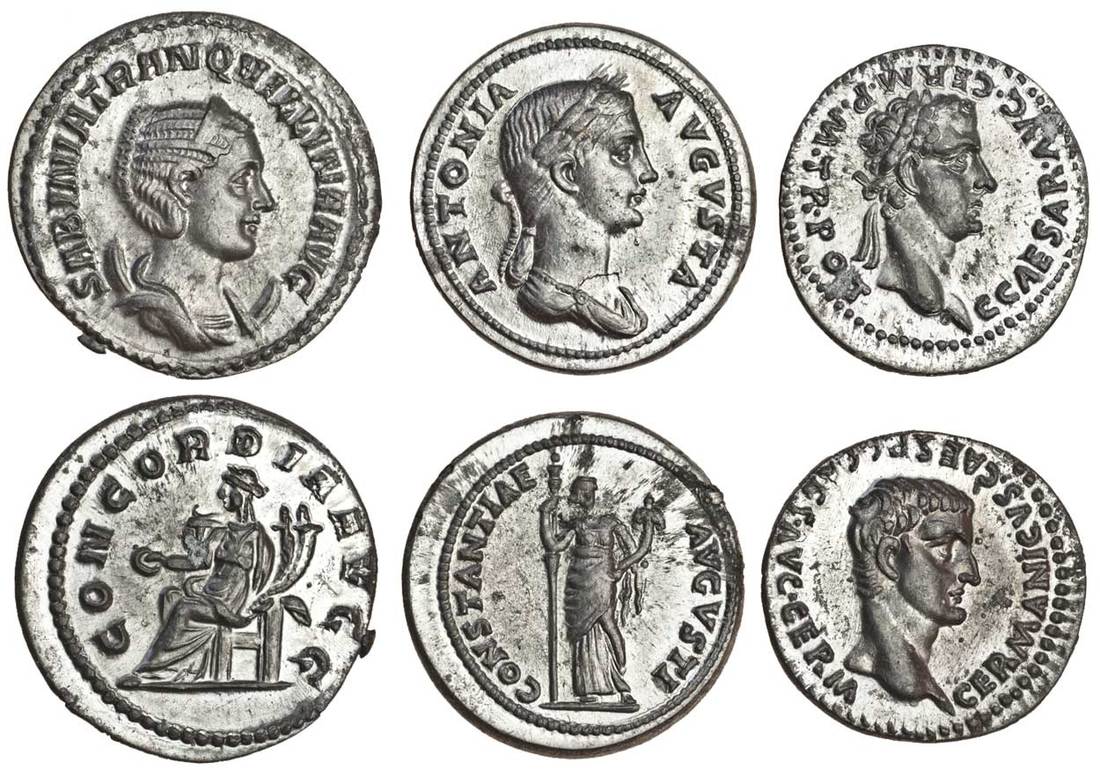 Carl Wilhelm Becker (1772-1830), forgeries in silver of an Aureus of Caligula, rev. Germanicus (Hill 151), an Antonia Denarius (Hill 156), and an Antoninianus of Tranquillina (Hill 203), all lustrous and mint state (3)
