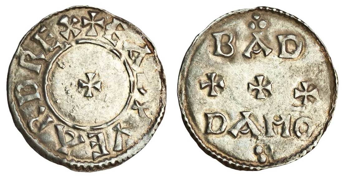 Edward the Elder (899-924), Penny, 1.51g, two-line type, Badda, +eadvveard rex around small cross pattée in centre, rev. bad/da mo, moneyer in two lines divided by three small cross pattées, trefoil of pellets above and below (N.649; S.1087), lightly toned, good very fine, scarce