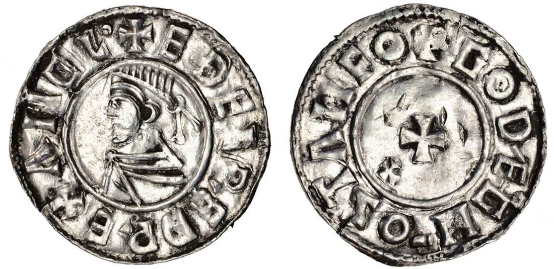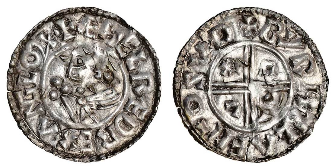 Aethelred II (978-1016), Pennies (2), 1.35g, crvx type, Southwark, Brihtlaf, bare headed bust left, in front a sceptre, rev. +bryhtlaf m-o svÐ, voided short cross, one letter of c r v x in each angle, 1.06g, last small cross type, Stamford, Godæg, bare headed bust left, rev, +godæg mo stanfo, small cross pattée (N.770, 777; S.1148, 1154), both cracked and passing light, very fine (2)