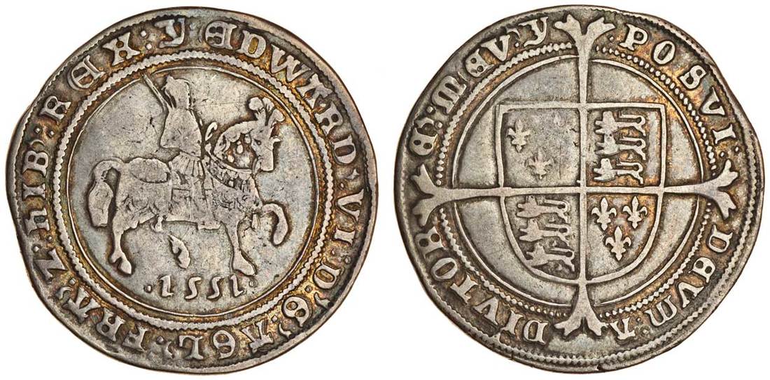 Edward VI (1547-53), Halfcrown, 14.98g, 1551, m.m. y, King on walking horse, date below, rev. shield over long cross fourchée (N.1934; S.2479), fine or slightly better with a pleasing golden tone