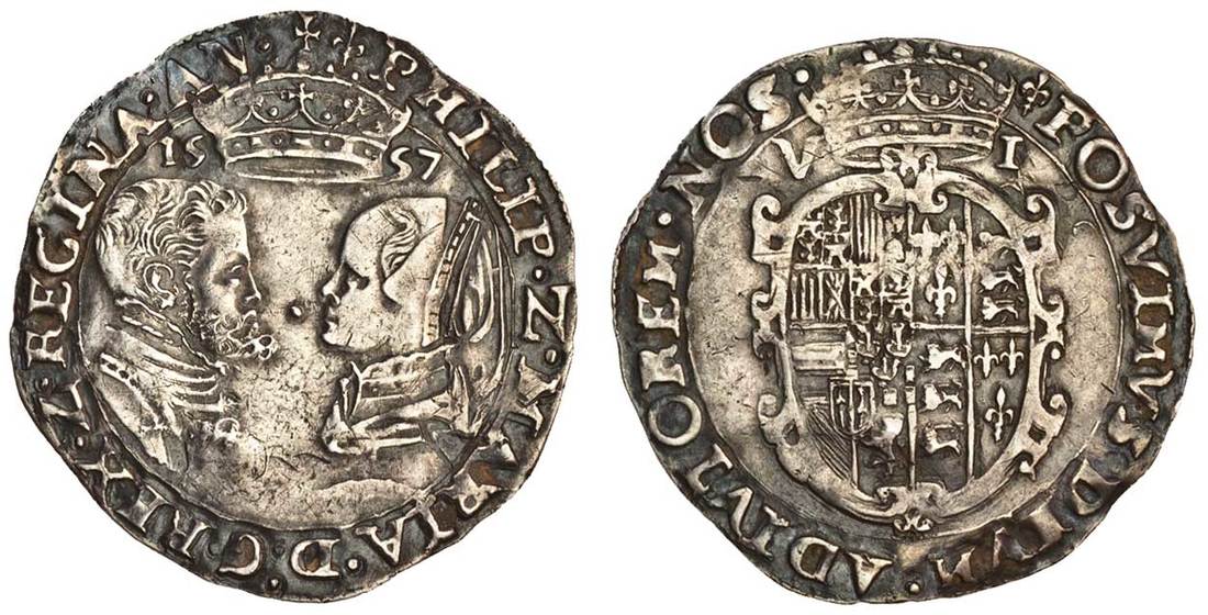 Philip & Mary (1554-8), Sixpence, 3.01g, 1557, m.m. lis, English titles only, busts face-to-face, rev. crowned oval shield (N.1971; S.2506), slightly creased, very fine, scarce