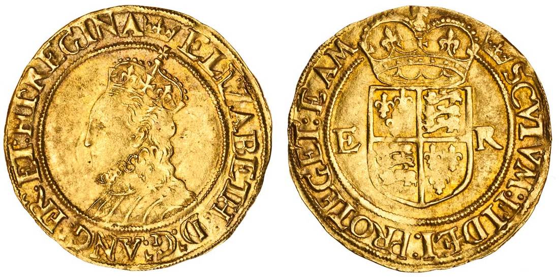 Elizabeth I (1588-1603), third-fourth issue, 1560-78, Half-Pound, 5.53g, m.m. coronet, elizabeth: d: g: ang: fr: et: hi' regina, young crowned bust left, rev. scvivm: fidei: proteget: e am, crowned shield dividing e-r, (Schneider -; N.1994; S.2520B), about extremely fine and with a good portrait