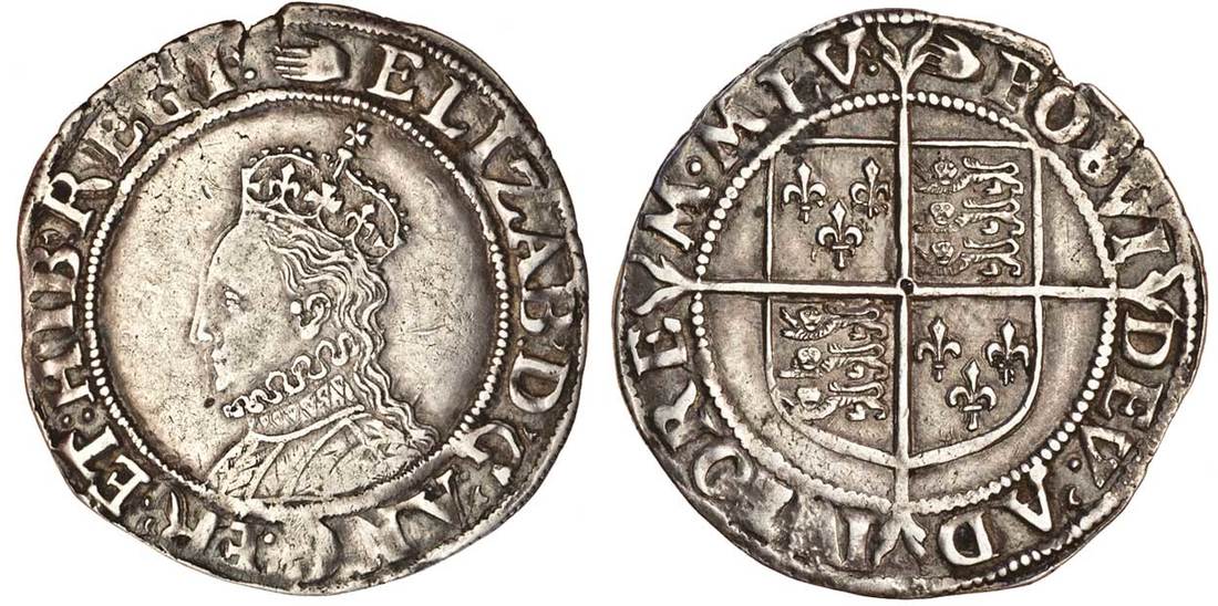 Elizabeth I (1558-1603), Shilling, 5.97g, m.m. hand, bust 6B, rev. shield over long cross fourchée (N.2014; S.2577), small striking split and chip to left of initial mark, very fine