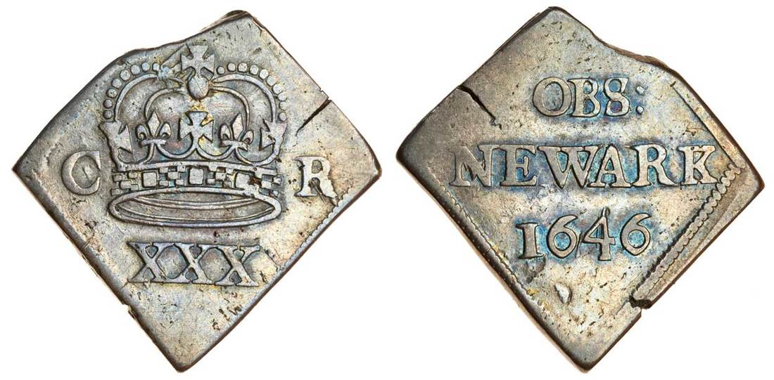 Charles I (1625-49), Halfcrown, 13.25g, Newark, 1646, c-r divided by crown, xxx below, rev. obs:/newark/1646 in three lines (N.2638; S.3140A), irregular, good fine