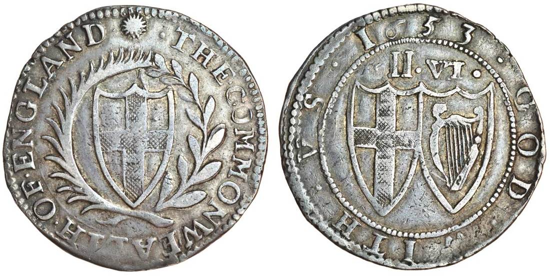 Commonwealth (1649-60), Halfcrown, 1653, 14.05g, m.m. sun/-, shield of St George within wreath of palm and laurel, rev. conjoined shields of St George and Ireland, mark of value above (N.2722; S.3215, ESC 28 (431)), general wear, nearly very fine