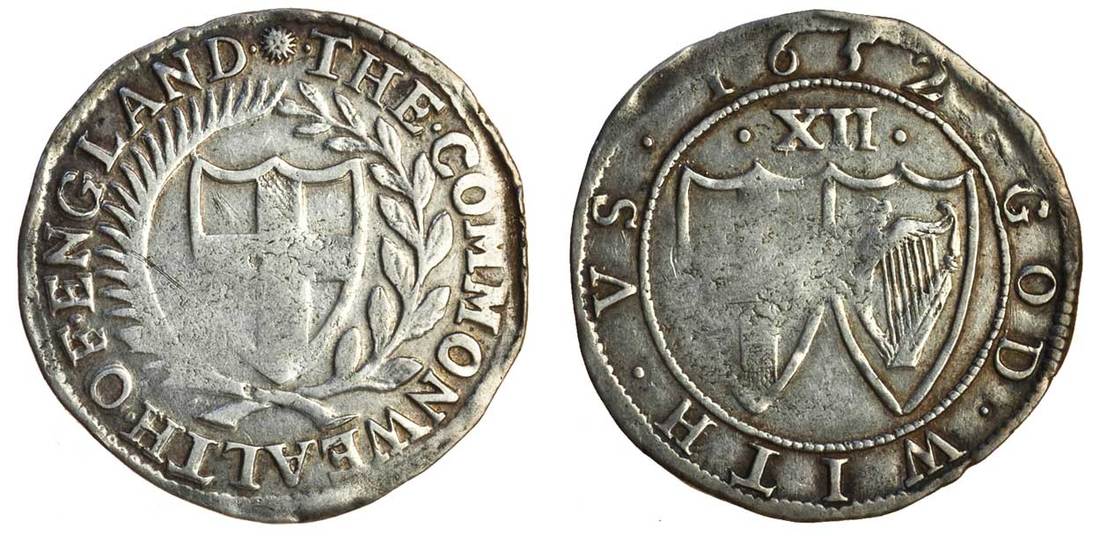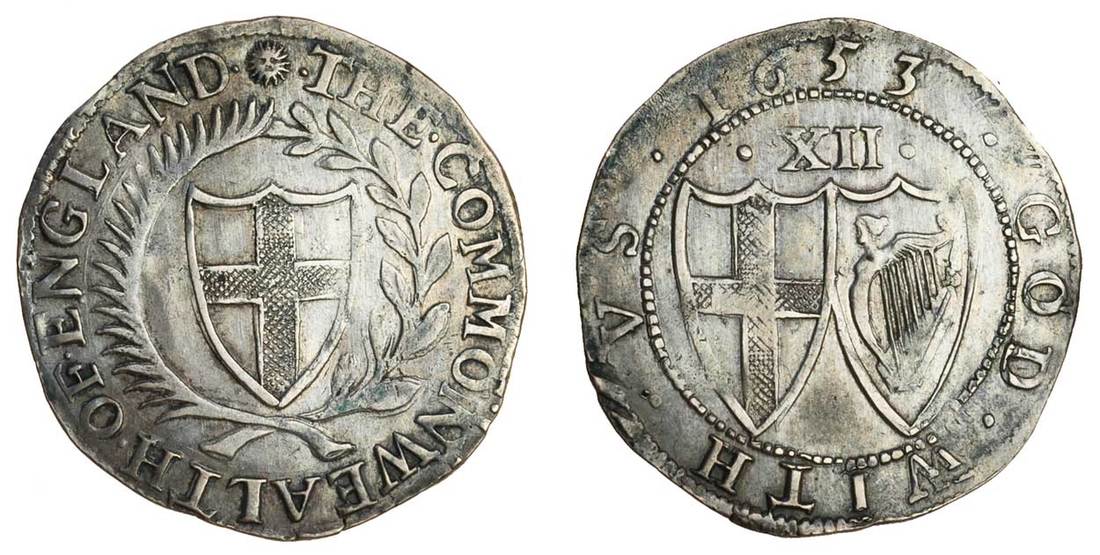 Commonwealth (1649-60), Shillings (2), 5.94g, 1652, 5.60g, 1653, m.m. sun/-, shield of St George within wreath of palm and laurel, rev. conjoined shields of St George and Ireland, mark of value above (N.2724; S.3217, ESC 103 (985), 124 (987)), the first weak in the centre, good fine, the second very fine (2)