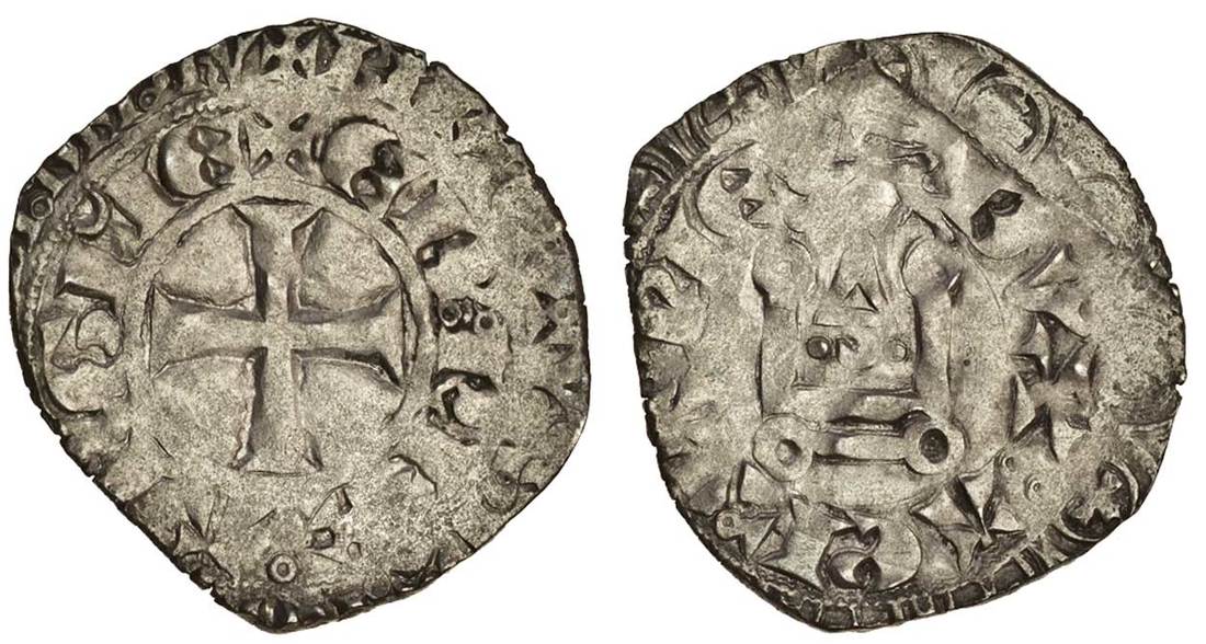 Anglo-Gallic, Aquitaine, Edward III (1327-77), Gros Tournois au Léopard au-dessus, crescent type, 1.88g, cross within inner circle, legend in two bands around, inner band, +ed rex anglie, rev. dvx aqitanie, crescent between pellets in chattel (Elias 62h; WF 69E-1/a; S.8060), fine, a very rare subtype