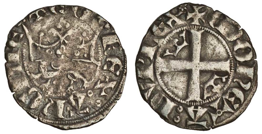 Anglo-Gallic, Aquitaine, Edward III (1327-77), Black Money, Double au Léopard sous Couronne, 1.01g, leopard passant left surmounted by large crown, sexfoil below leopard, +ed rex anglie, rev. +moneta dvplex, cross pattée within inner circle, crown in two quarters (Elias 92c; WF 100E-2/b; S.8080), very fine