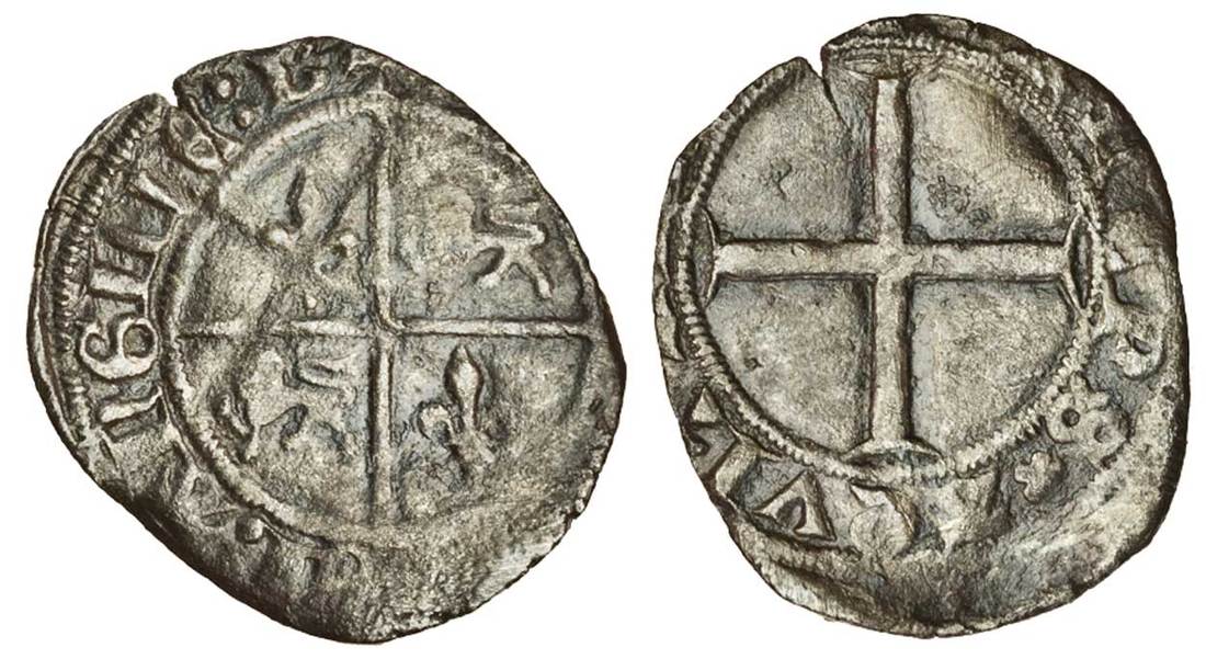 Anglo-Gallic, Edward the Black Prince (1362-72), Black Money, Denier, 0.85g, Bordeaux, cross within inner circle, lis and leopards in alternate angles, rev. +prncps aqvitanie, b at end of legend (Elias 218a; WF 261-1/a; S. 8139) good fine, extremely rare