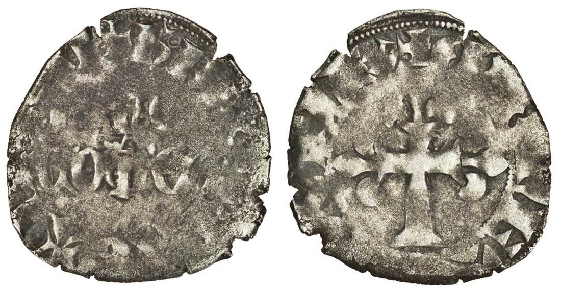 Anglo-Gallic, Bergerac, Henry, Earl of Lancaster (1347-61), Double, 1.51g, Bergerac, lanc come in two lines across field, omega above each line, rev. +moneta dvplex, latin cross with three upper arms ending in fleur-de-lis (Elias 132 bis; WF 310; S. 8112), fine, extremely rare