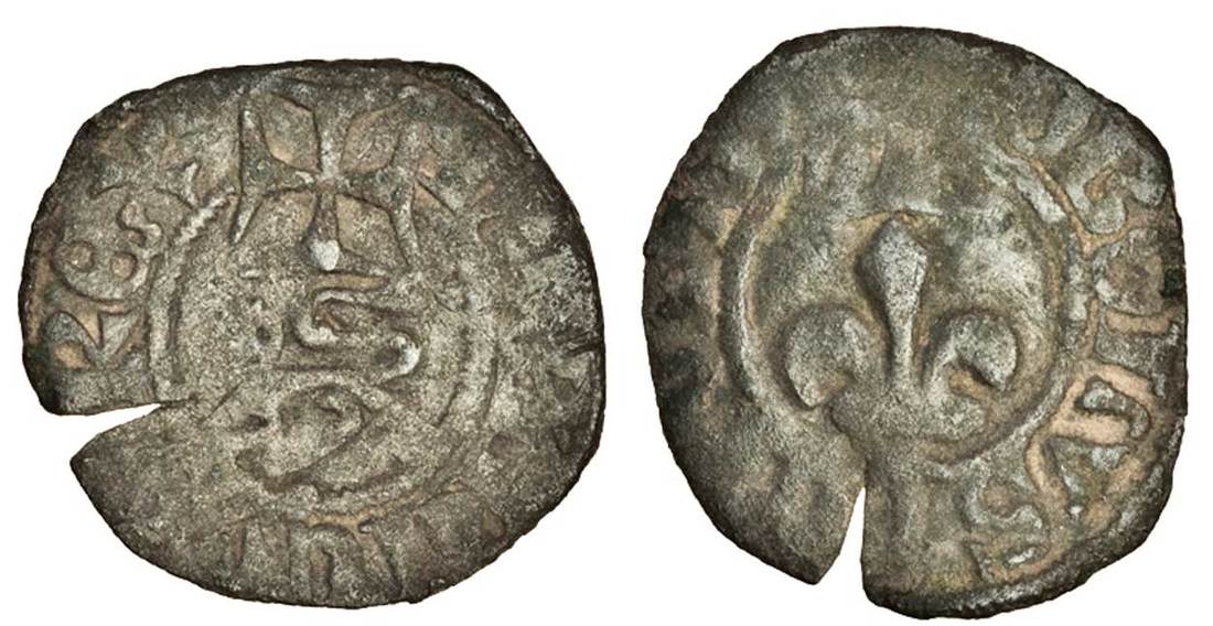 Anglo-Gallic, Henry VI (1422-53), Maille Tournois, 0.76g, Rouen, pellet below c of henricvs and civis, leopard passant left, cross pattée above, rev. obolos civis, fleur-de-lis, cross pattée above (Elias 317; WF 445-1/a; S. 8173), about fine
