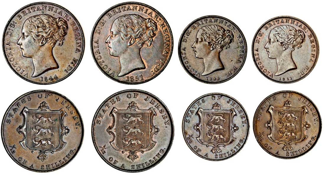 Jersey, Victoria (1838-1901), 1/26-Shillings (2), 1844, 1851, 1/13-Shillings (2), 1844, 1851 (S.7001, 7002), about extremely fine or better (4)