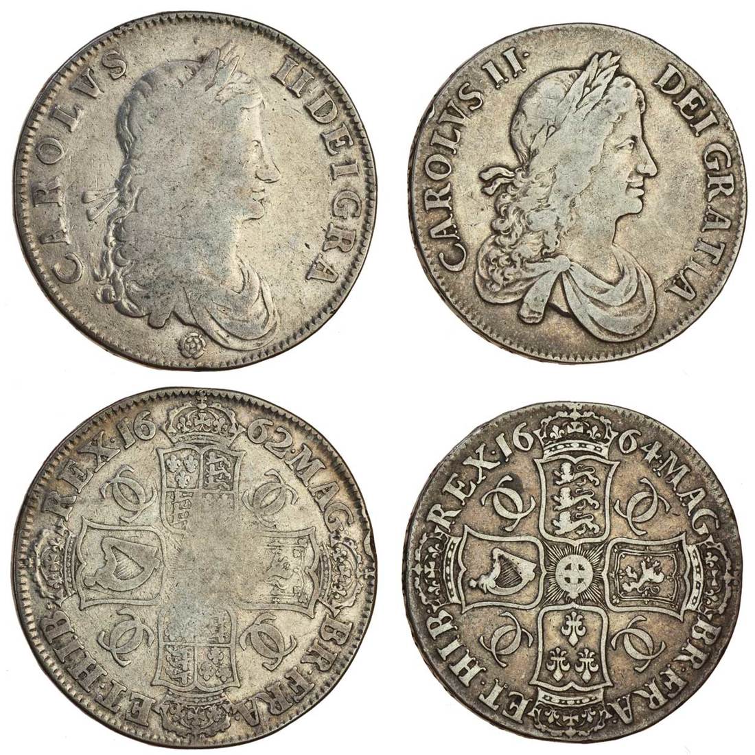Charles II (1660-85), Crowns (2), 1662, rose below bust, 1664 xvi (S.3350, 2255), fine (2)