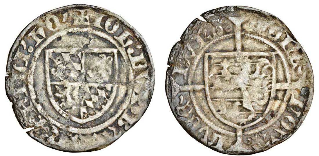 Luxembourg, John of Bavaria and Elizabeth of Görlitz (1419-25), Half-Gros (Half-Beyersgroschen), 1.25g, +ioh' dvx bavar' z fili'. ho', shield, rev. mone-nova.-luce'-bvrg:, shield on long cross (de Mey 195; Weiller 183), about very fine
