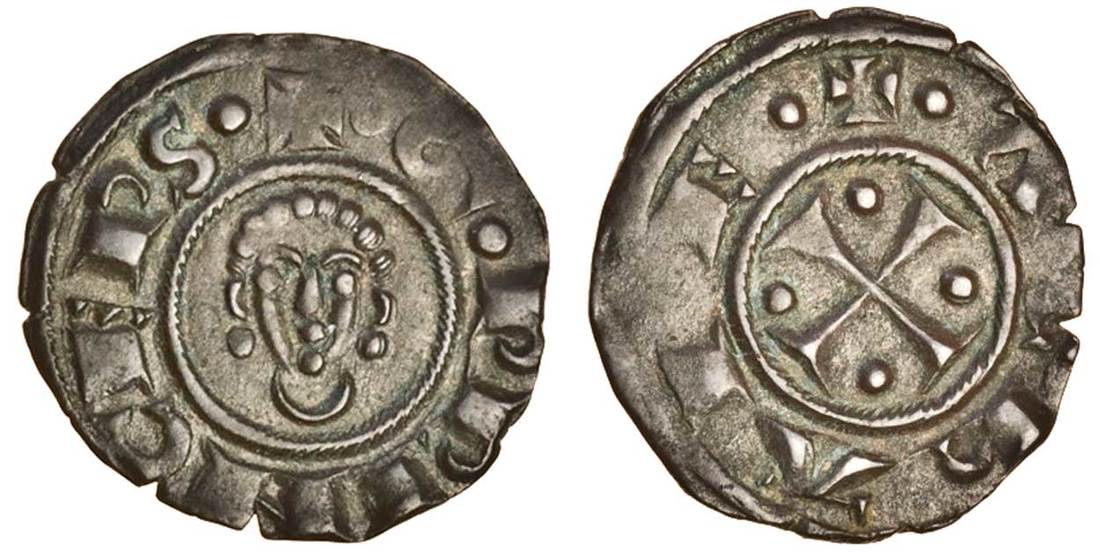 Achaia, William of Villehardouin (1245-78), AE Denier of Clarentia, 0.96g, before 1250, + g. princeps., head facing, rev. + .achaie., cross, pellets in angles (Sch. XII, 6; CCS.5), good very fine, rare