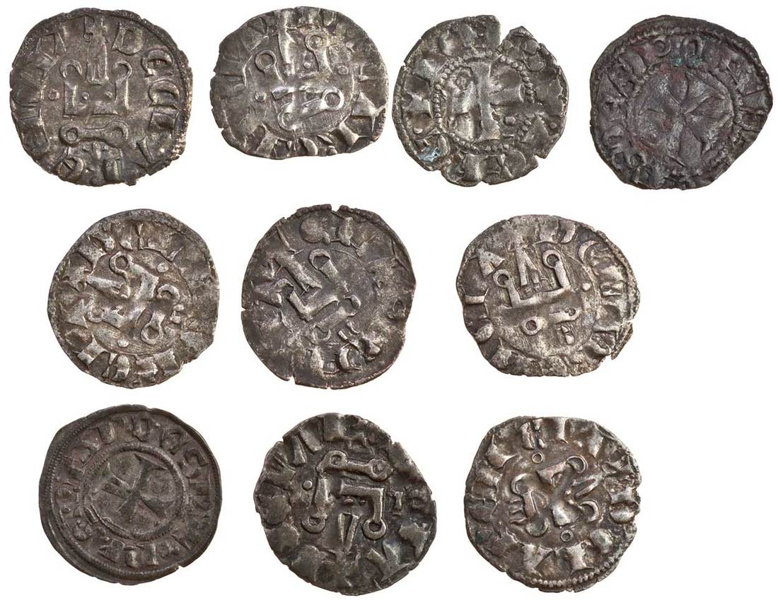 Achaia, billon Deniers Tournois (10), including Mahaut (Maud) of Hainaut (1316-21), and others, fine to very fine