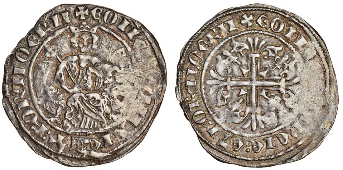 Latin Orient, anonymous, Gigliato, imitating a Naples Gigliato of Robert of Anjou, 3.94g, King seated on throne facing, rev. cross fleury (Schl. VIII, 18), flat in part, otherwise very fine