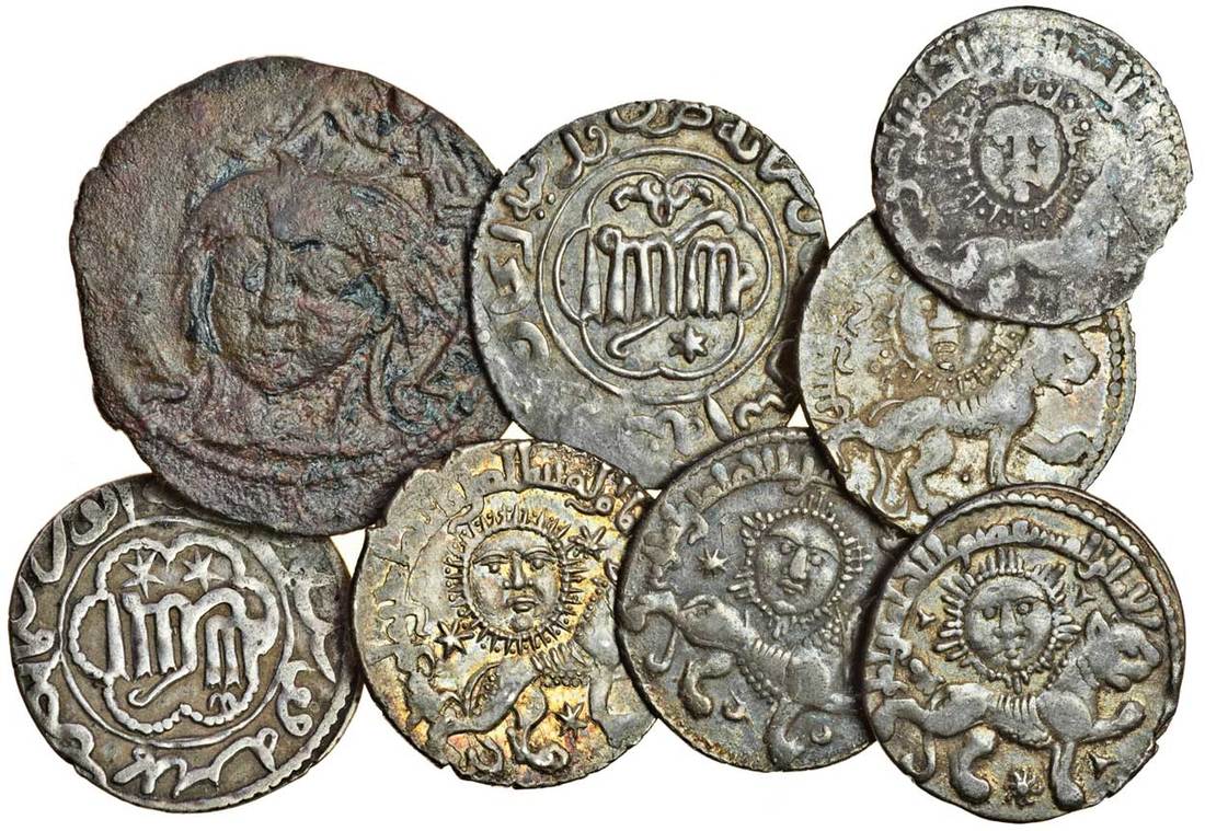 Seljuq of Rum, Kaykhusraw II (1236-45), Dirhams (5), lion with sun above, Konya, AH641 (2), Sivas, AH639 (2), date unclear, Kaykhusraw III (1265-83), Dirhams (2), Konya, AH664, Erzincan, AH672, Zangid of Mosul, Saif al-Din Ghazi II (1169-80), AE pictorial Dirham, naming Tughril Beg (A.1218, 1232, 1861.1; Broome 246, 272, 546, 748), the AE Dirham about fine, Seljuq Dirhams mostly very fine, some a little better (8)