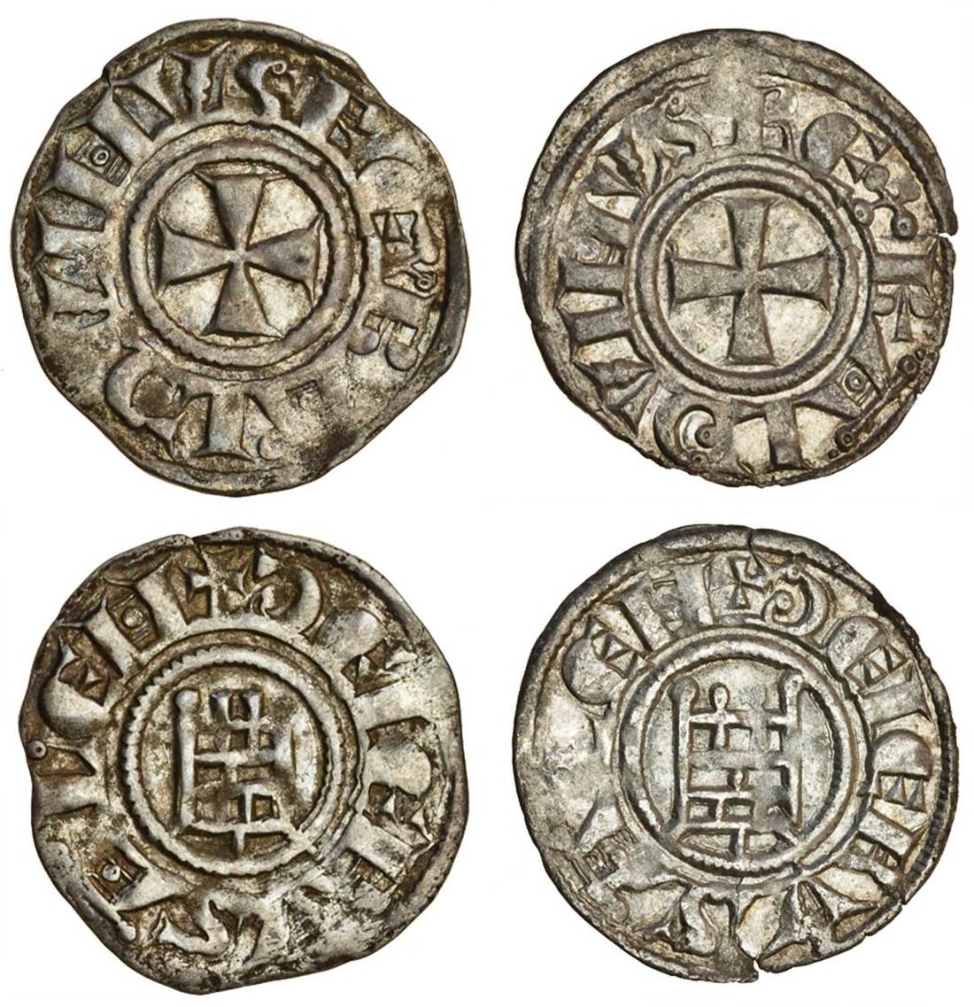 Jerusalem, Baldwin III (1143-63), billon Deniers (2), 0.73 and 0.93g, smooth series, cross, rev. castle (Metcalf, group 4; Schl. III, 21), very fine (2)