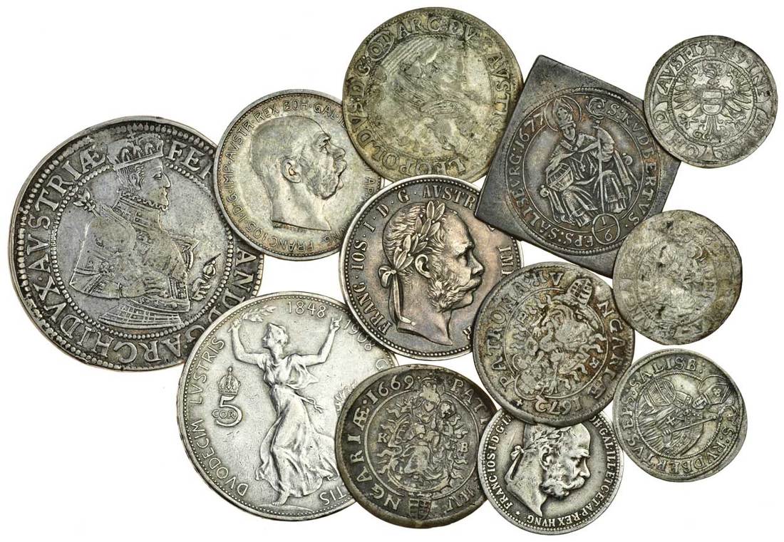 Austria, silver coins (12), including Ferdinand II (1619-37), Thaler, 1620, Klagenfurt Mint (KM 24), about very fine, Salzburg, Maxmilian Gandolph (1668-87), 1/6-Thaler, 1677, klippe (KM 215), 3-Kreuzer, 1681 (KM 228), fine to very fine (12)