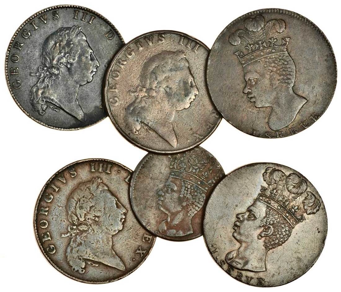 Barbados, Pennies (2), 1788, large head fine, 1792, very fine and Halfpenny, 1792, fine; Bermuda, Pennies (3), all 1793, fair to fine (6)
