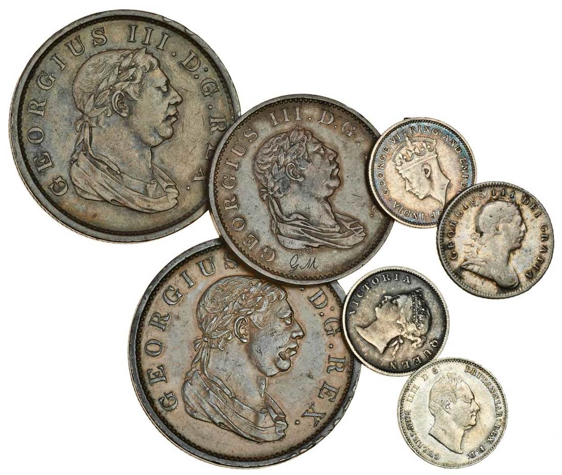 British Guiana, Essequebo & Demerary, George III (1760-1820), Stiver (2), 1/2-Stiver, all 1813 (KM 10, 9; Pr.29A, 30), 1/4-Guilder, 1809 (KM 4, Pr.20), British Guiana, 1/4-Guilder, 1836 (KM 23; Pr.25), Four-Pence (2), 1894, 1940 (KM 26, 30; Pr.54), average very fine and better (7)