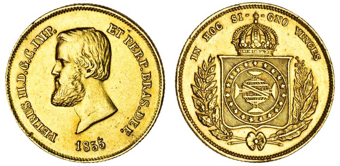 Brazil, Peter II (1831-89), 5,000-Reis, 1855, and 2,000-Reis, 1888, head left, rev. crowned shield (F.123; KM 470 and 485), very fine (2)