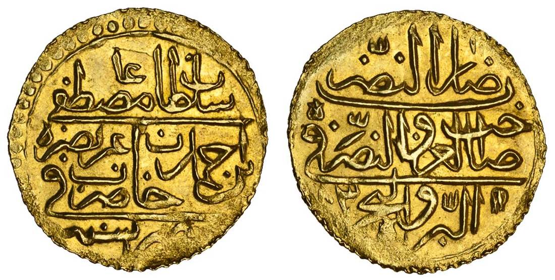 Egypt, rebellion of Ali Bey (1769-71), AV Zeri Mahbub, Misr, AH(11)83, citing the Ottoman sultan Mustafa III (KM. 119), some edge weakness, extremely fine, rare