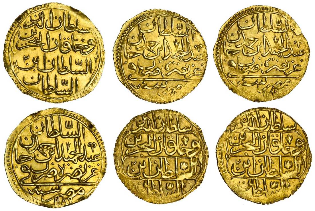 Egypt, Abdul Hamid (1774-89), AV Zeri Mahbubs (3), AH1187 / (119) 2, legends both sides (KM.127), one pierced in the margin, generally extremely fine with weak areas (3)