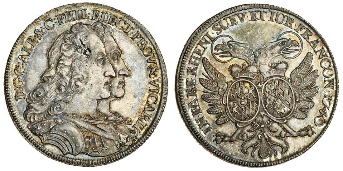 Germany, Pfalz-Neuburg, Karl Philip (1716-42), Vicariat Taler, 1740, busts right, rev. shields on double eagle (Dav.2530; Haas 27; Wittlesbach 1957), metal flaw on obverse, lustrous and with old cabinet tone, extremely fine