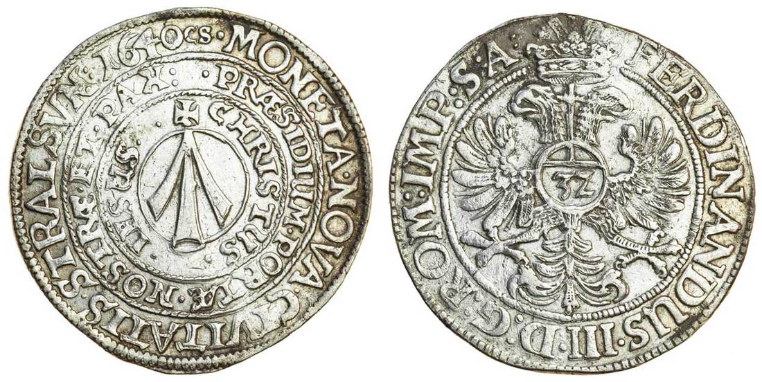 Germany, Stralsund, city coinage in the name of Ferdinand III, Taler, 1640 cs, city arms in circles of legend, rev. Imperial eagle (Dav.5883; KM 105), cleaned, very fine, rare