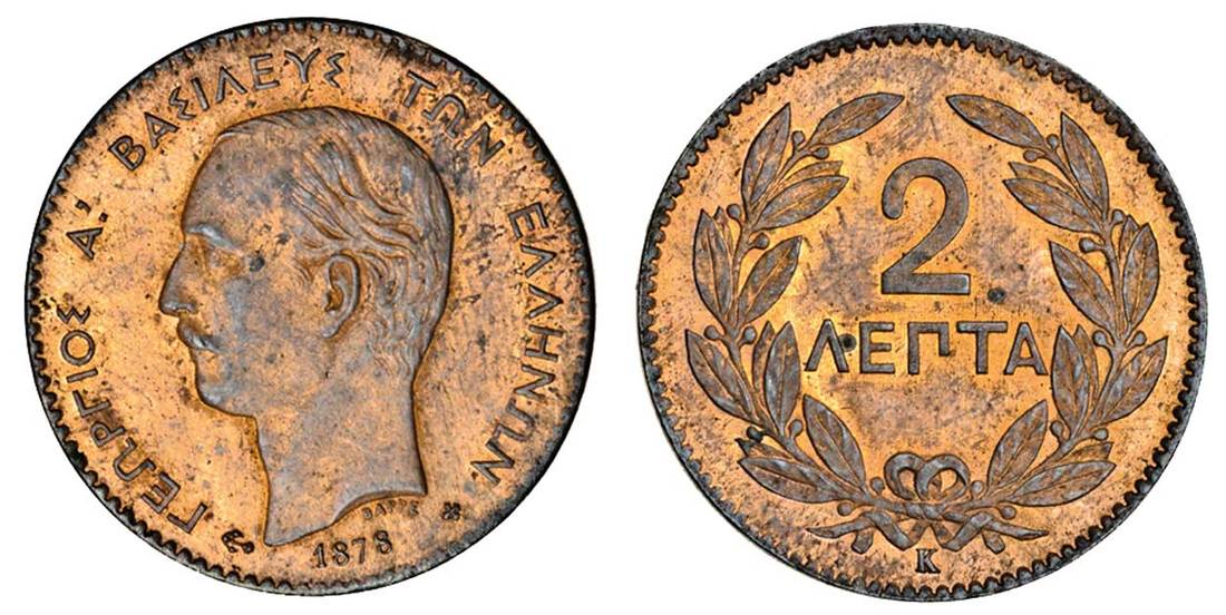 Greece, George I (1863-1913), 2-Lepta, 1878K, old head left, rev. value in wreath (Divo 68; KM 53), rub on the high points, extremely fine, with lustre