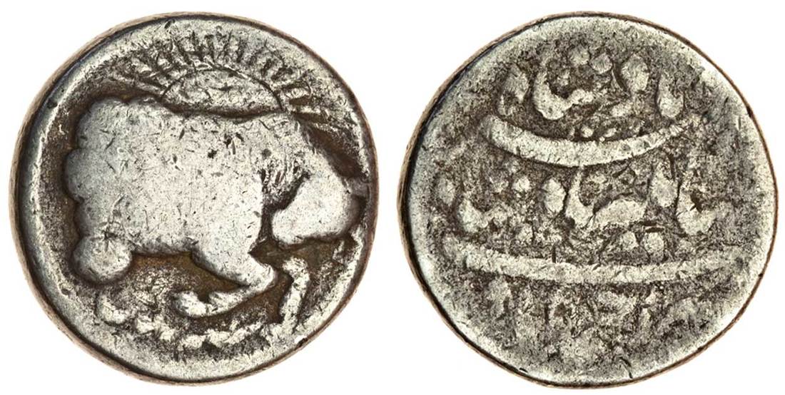 India, Mughal Empire, Jahangir (1605-27), zodiac Rupee, 10.79g, Taurus, Ahmadabad, date unclear (AH1027) (KM.150.5), very good, rare